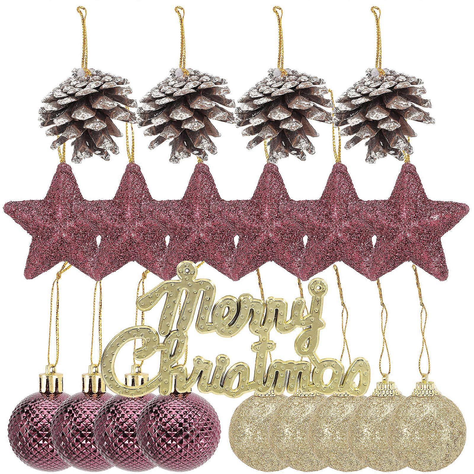20pcs Christmas Decorations Xmas Ball Pine Cone Star Hanging Ornaments Xmas Decor