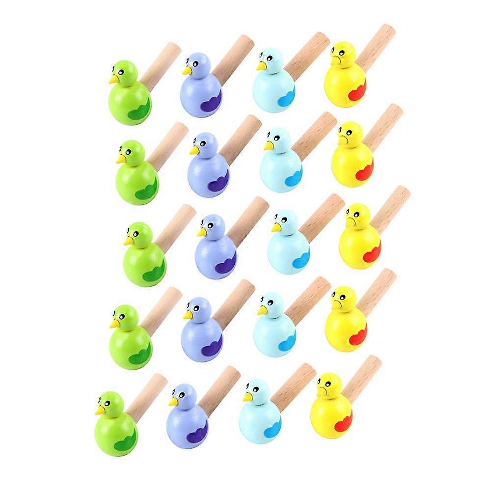 20Pcs Cartoon Bird Shaped Whistles Wooden Whistle Toys Funny Children Whistle Toys