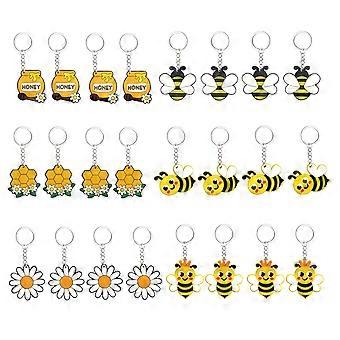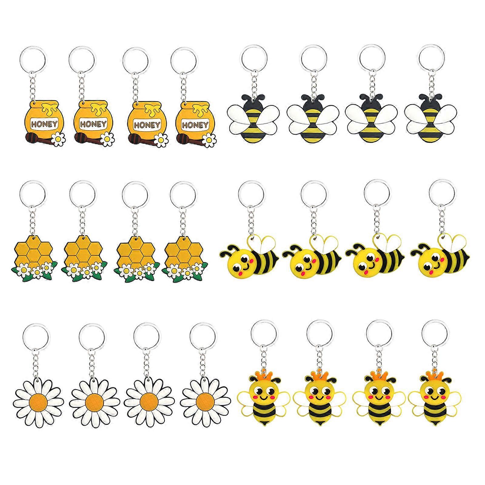 24 Pcs Fashion Bees Jar Keychain Honeycomb Bees Flower Keychains for Women Bag Pendant Jewelry Trinkets Car Key Chain