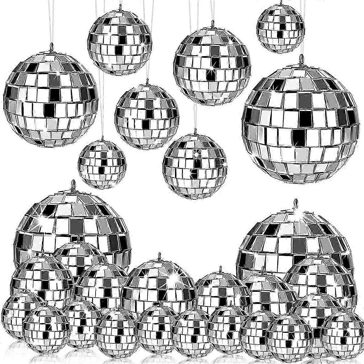 24 Pcs Mirror Disco Ball Hanging, Glass Disco Ball Decor, Disco Party Decorations, for Holiday Party