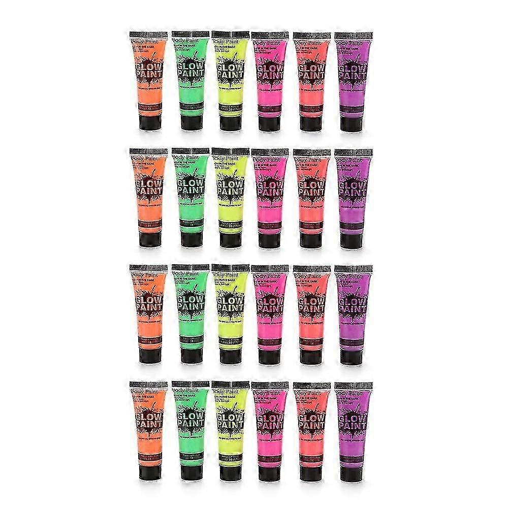 24 Tubes (10ml) Art Face & Body Paint, Glows in UV Light with 6 Blacklight Colors