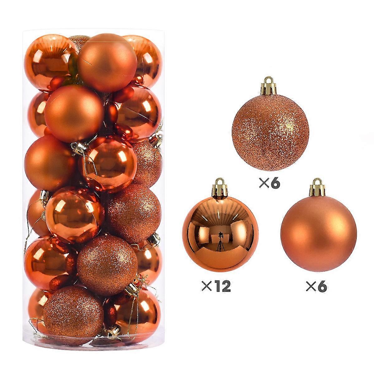 24Pcs 4cm Christmas Ball Xmas Party Plastic Ornaments Hanging Decoration-Bronze/Bronze
