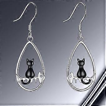 2db Black Cat medál fülbevaló születésnapi zsúr Valentin-napi évfordulós ajándék Ékszer fülbevaló nőknek