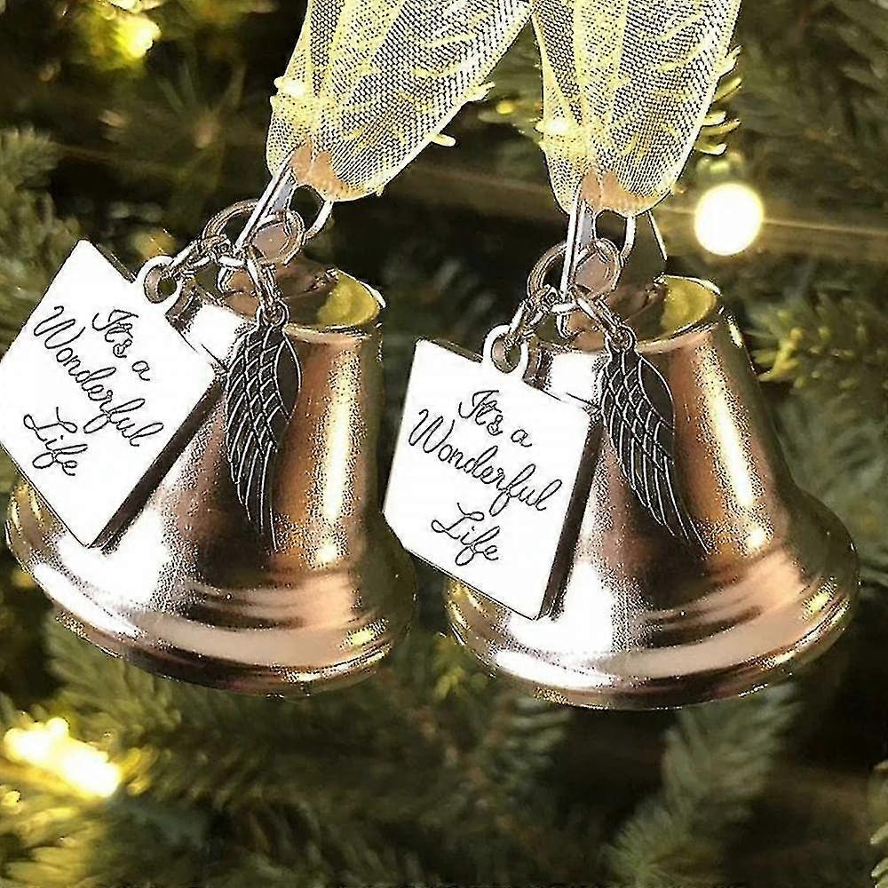 2pcs It's A Wonderful Life Christmas Angel Wing Bell Decor Xmas Tree Hanging Ornament