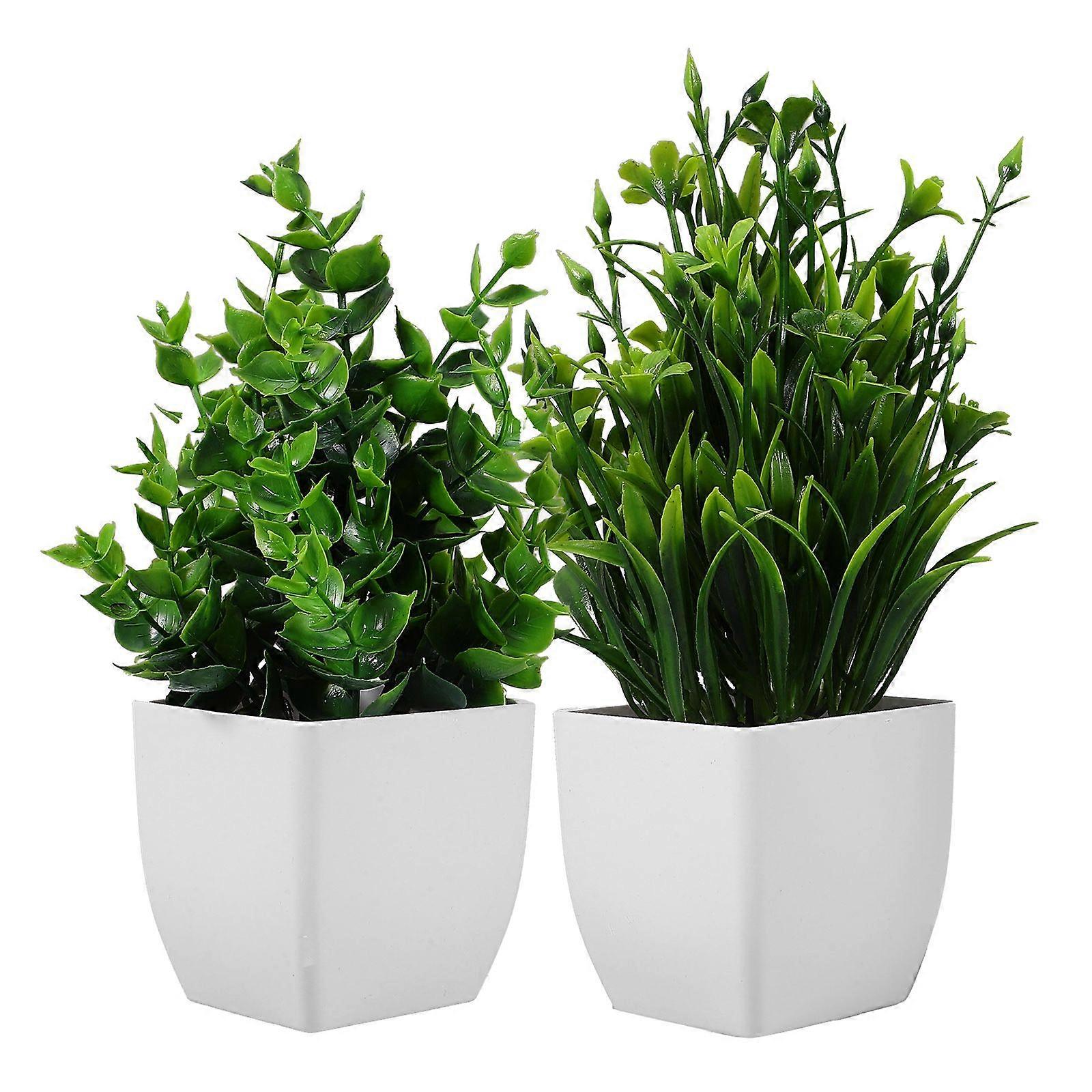 2pcs Fake Potted Plant Realistic Artificial Plant Decor Greenery In Pot Fake Bonsai Decoration