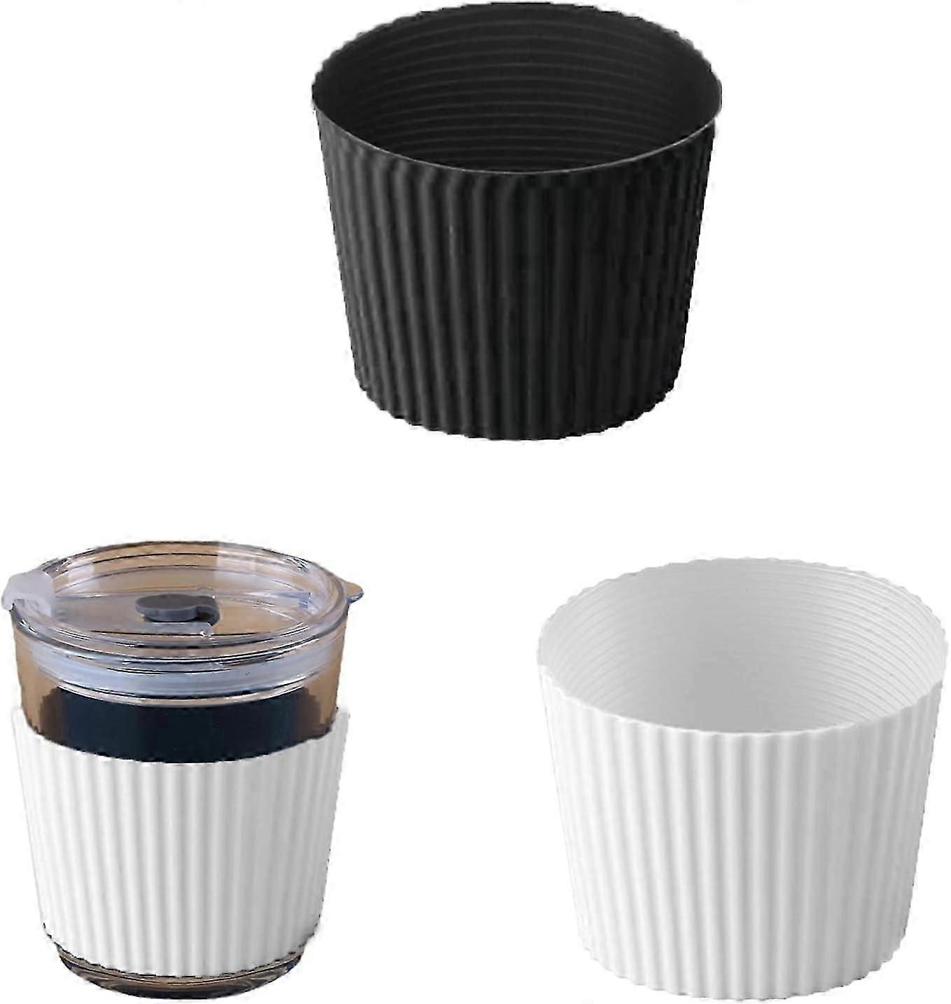 2Pcs Heat-Resistant Nonslip Coffee Silicone Cup Sleeve for Drinks (Black and White) Reusable Cup Sleeve Protector Cover