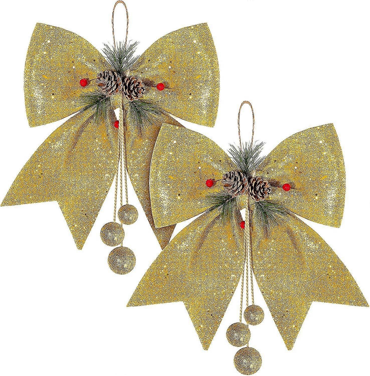 2pcs Christmas Bow Decorations, Gold Wreaths Bows, Large Christmas Tree Bow, Sequin Bow Ties