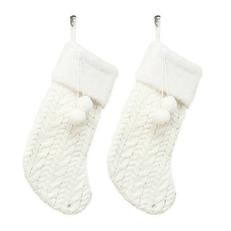 2pcs Knit Christmas Stoings, Knit Christmas Stoings With Pom Pom For Christmas Decorations