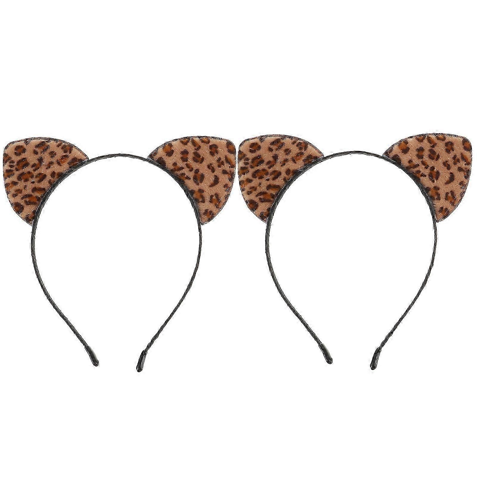 2Pcs Leopard Cat Ear Headbands Cosplay Party Hairbands Leopard Ear Headbands