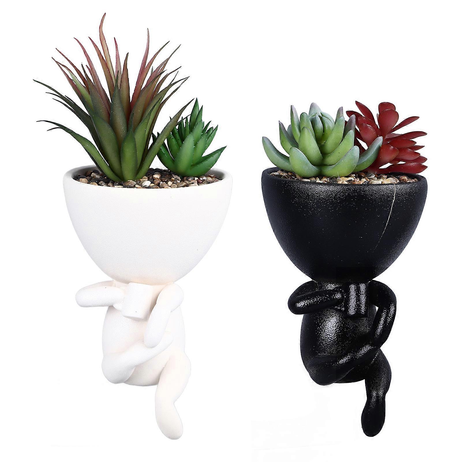 2Pcs Plant Cute Human Shaped Small Fake Plants Pot Artificial Mini Potted Succulents with Ceramic Pots