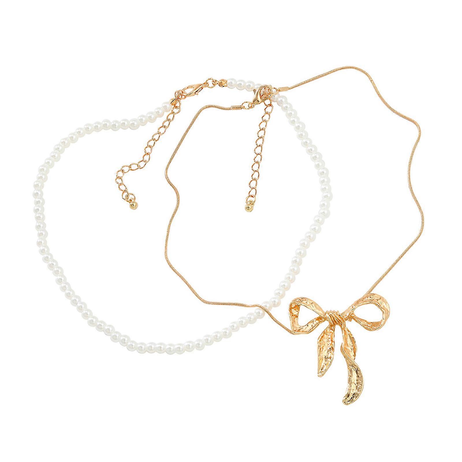 2Pcs Necklace Set Stylish Bowknot Charm Choker Imitation Pearls Beaded Clavicle Chain Jewelry for Fashion Enthusiasts