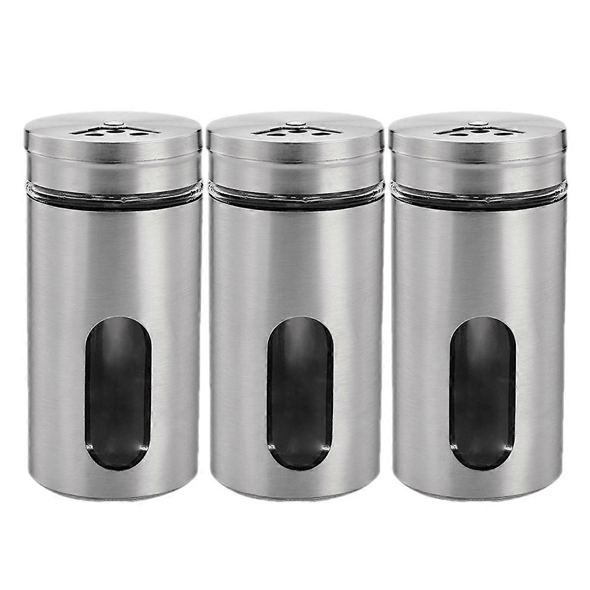 2pcs Salt and Pepper Shakers,Stainless Steel Shaker for Salt Powder Sugar Cinnamon Pepper, Spice Dispenser with Adjustable Pour Holes,Silver