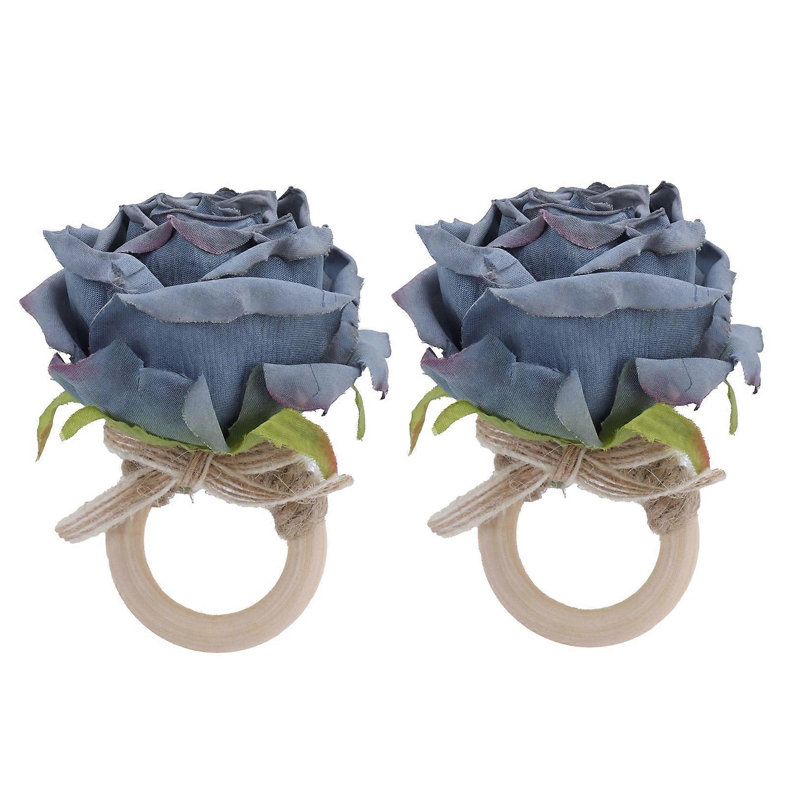 2Pcs Novelty Wooden Napkin Buckle Artificial Floral Napkin Ring for Festival Table Decoration