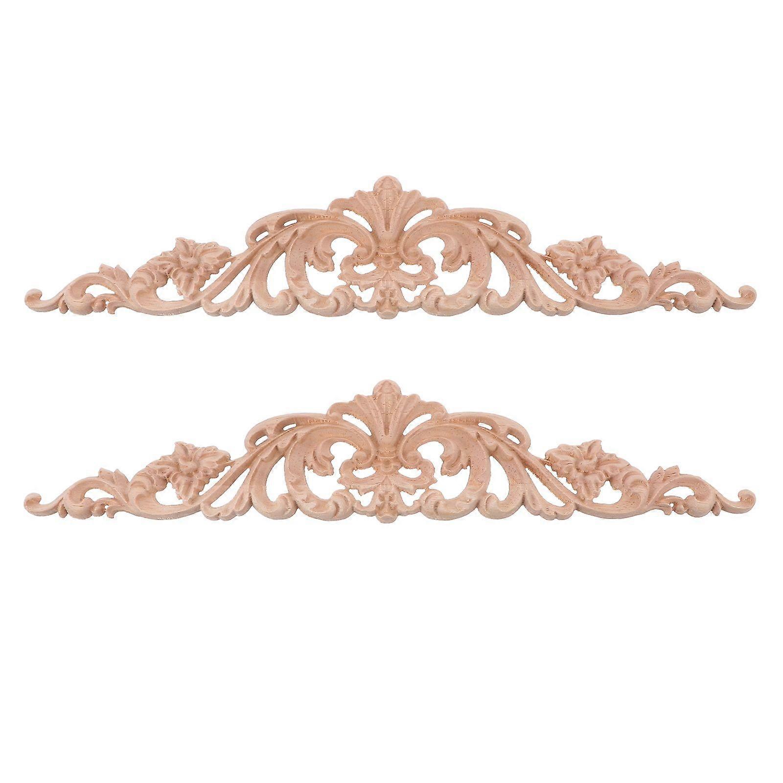 2Pcs Floral Wood Carved Appliques Wooden Figurines Crafts Corner Appliques Decor