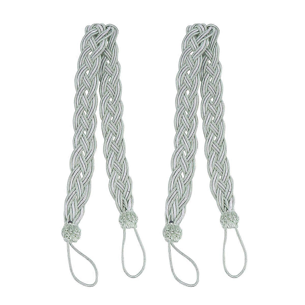 2PCS Handmade Woven Curtain Tiebacks Rope Strap Braided Drapery Tieback Belt (Light Green)