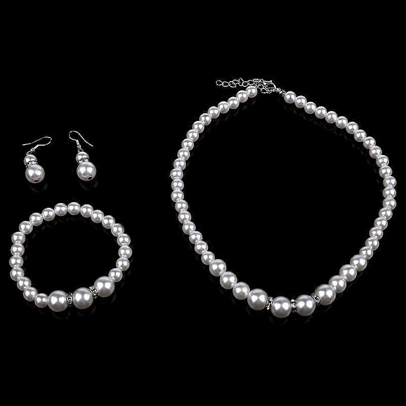3 Pcs Exquisite Pearl Earrings Necklace Bracelet Set Fashion Gifts Mother's Day