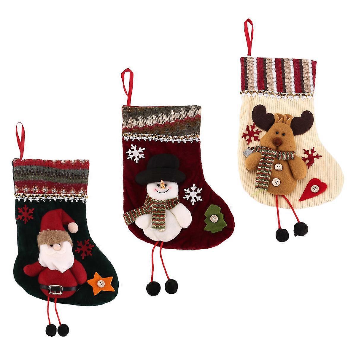 3 Pcs Christmas Stockings Santa Claus Reindeer and for Xmas Holiday Party Decor