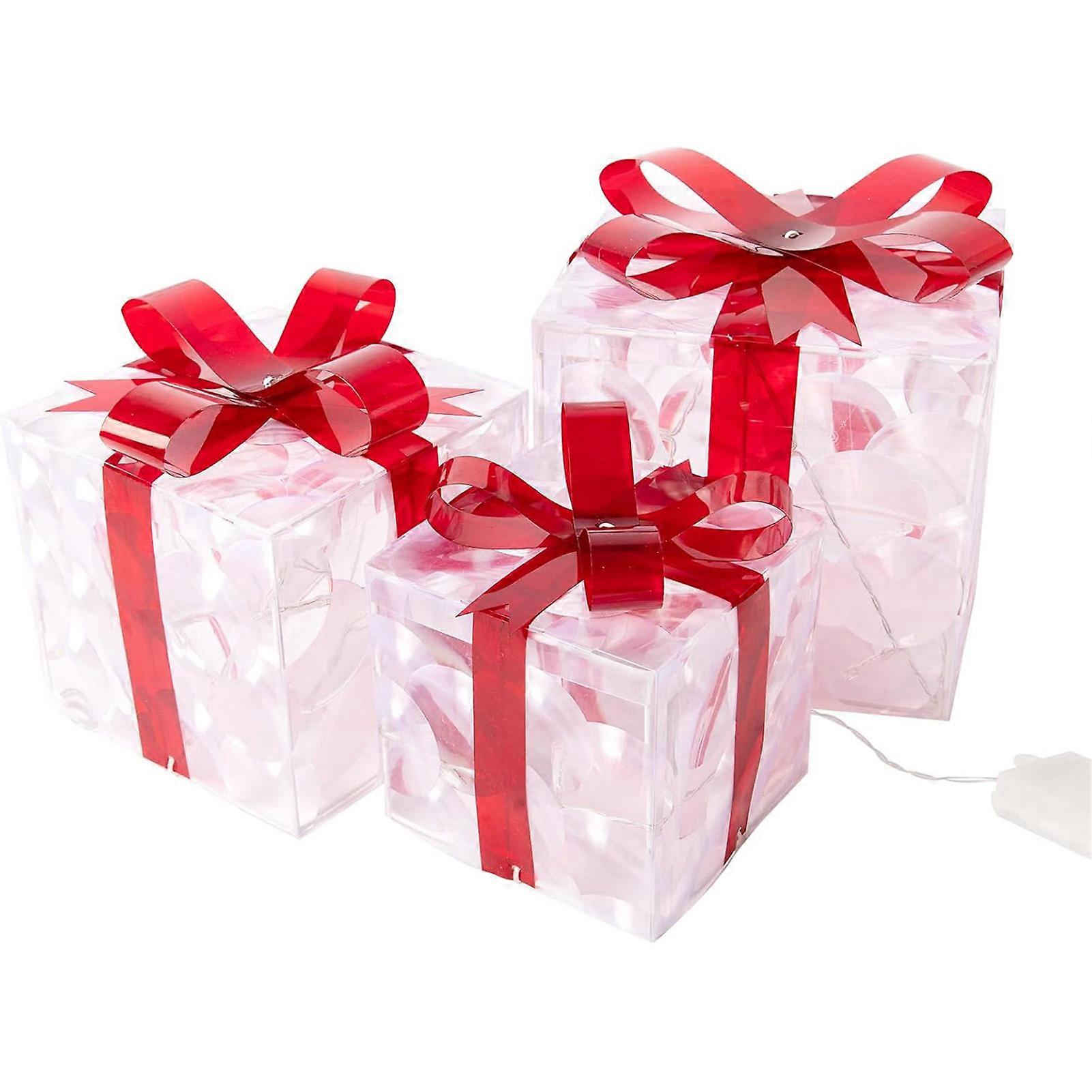 Set of 3 Christmas Lighted Gift Boxes Foldable Batteries Powered Warm Lights