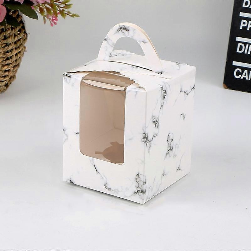 30 PCS Transparent Window 1 Piece Cardboard Portable Cup Cake Box Mousse Pastry Box Marble Marble