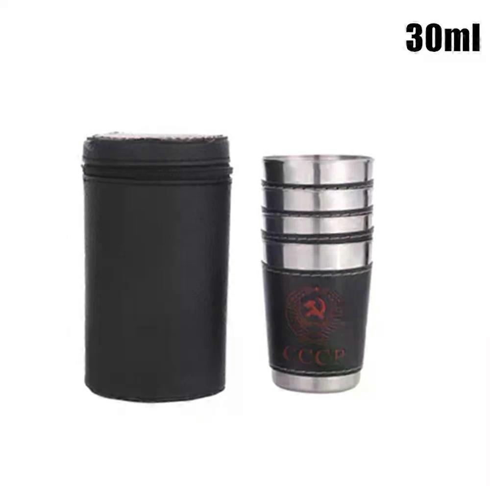 30/70/170ml Outdoor Camping Tableware Travel Cups Set Picnic Supplies Stainless Steel Wine Beer Cup Whiskey Mugs PU Leather