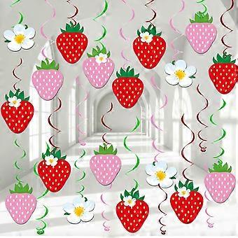 32Pcs Strawberry Party Decorations, Strawberry Hanging Swirl Berry First Birthday Banners, Strawberry Foil Swirls Ceiling for Baby Shower