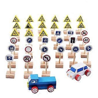35pcs Wooden Street Signs Traffic Signs Playset Children's Educational Toys for Traffic Knowledge Learning