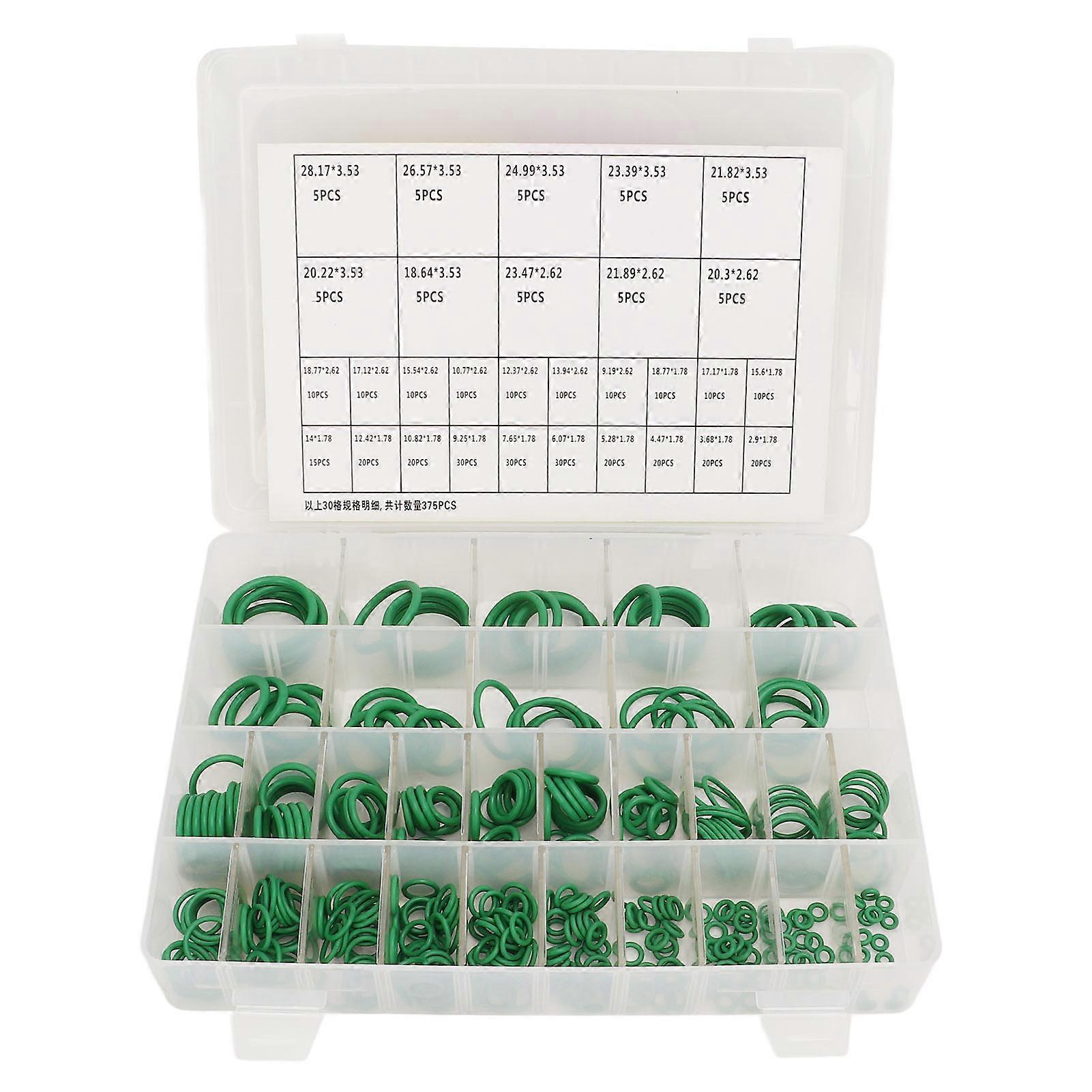 375pcs O Ring Seal Kit Universal Green Portable Leak Proof for AC Plumbing Automotive