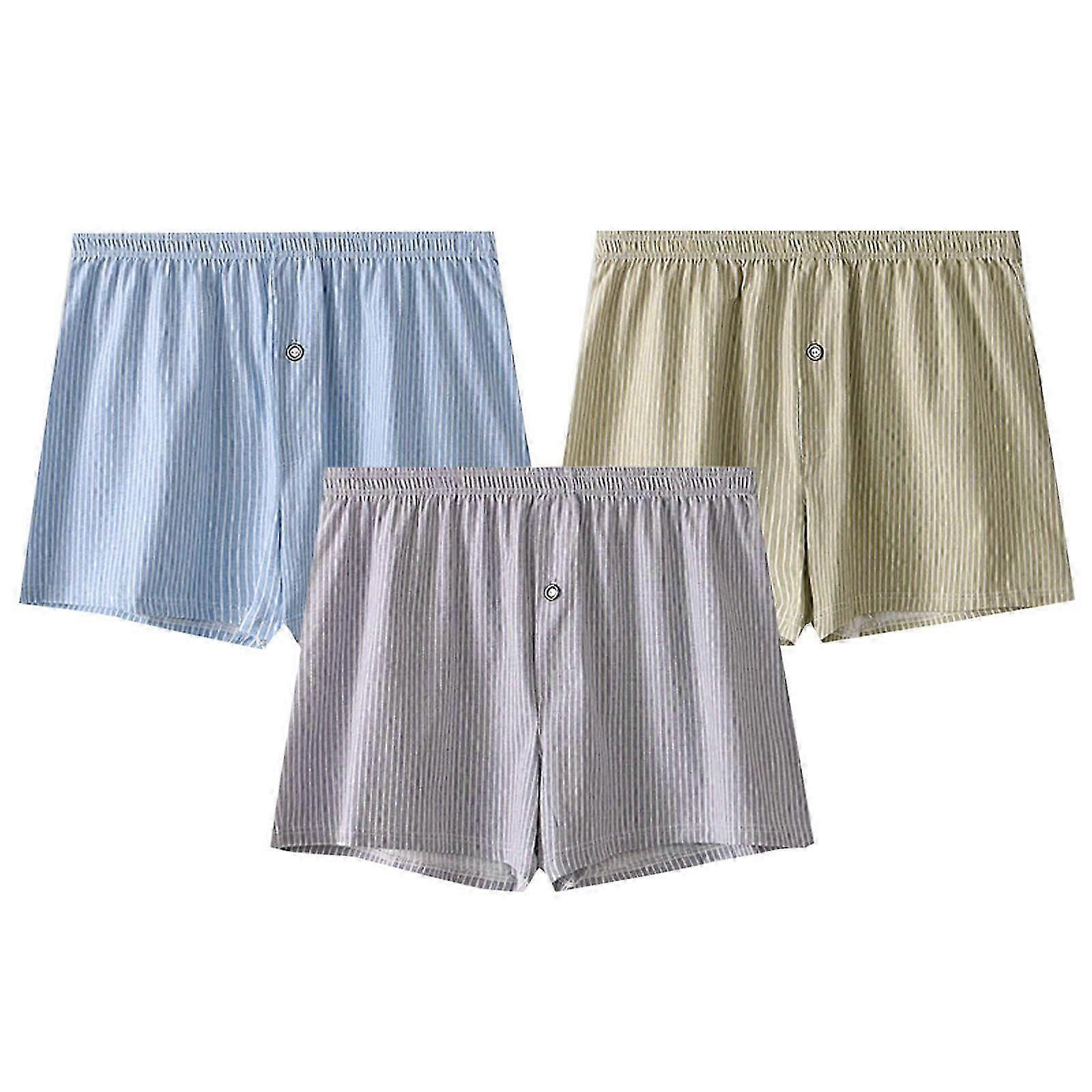 Men Loose Breathable Sports Home Four-Corner Pants Striped Button Flat-Corner Underwear Boxers Features: Fabric that feels as good as it looks. Make you super sexy and seductive. Stimulative kit for sexual life of couples. SOFT JUST GOT AN UPGRADE - Our softest fabric , luxurious viscose from . Put your body in a totally relaxed status LIGHTWEIGHT - -wicking fabric helps you stay cool and comfortable. MODERN - Men's trunks feature a close-to-body , lower , and shorter leg than standard briefs. SEAMS - Soft seams and soft threads help reduce chafing in men's underwear.The three-dimensional fits thighs, increasing the. Product Details: Seasons: All Season Gender: Male Occasion: Sexy Material: 95% cotton+5% spandex Style: Casual, sexy How to clean: Hand wash with cold water You will receive: 3PC Boxers Size:MLabel Size:MediumWaist:68cm/26.77''Hip:88cm/34.65''Length:29cm/11.42''Suggested Weight:45-60KGSize:LLabel Size:LargeWaist:72cm/28.35''Hip:92cm/36.22''Length:30cm/11.81''Suggested Weight:60-70KGSize:XLLabel Size:X-LargeWaist:76cm/29.92''Hip:96cm/37.80''Length:31cm/12.20''Suggested Weight:70-80KGSize:XXLLabel Size:2X-LargeWaist:80cm/31.50''Hip:100cm/39.37''Length:32cm/12.60''Suggested Weight:80-95KG