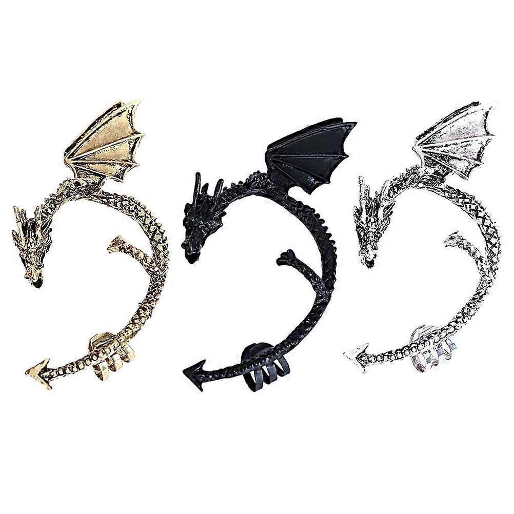 3pcs Gothic Ear Clips Punk Retro Style Flying Dragon Wing Ear Cuff Clips