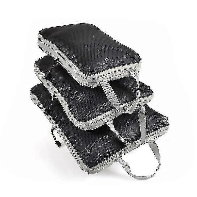 3Pcs/set Compressible Travel Storage Bags, Black/Blue/Grey, Large Capacity Packing Cubes
