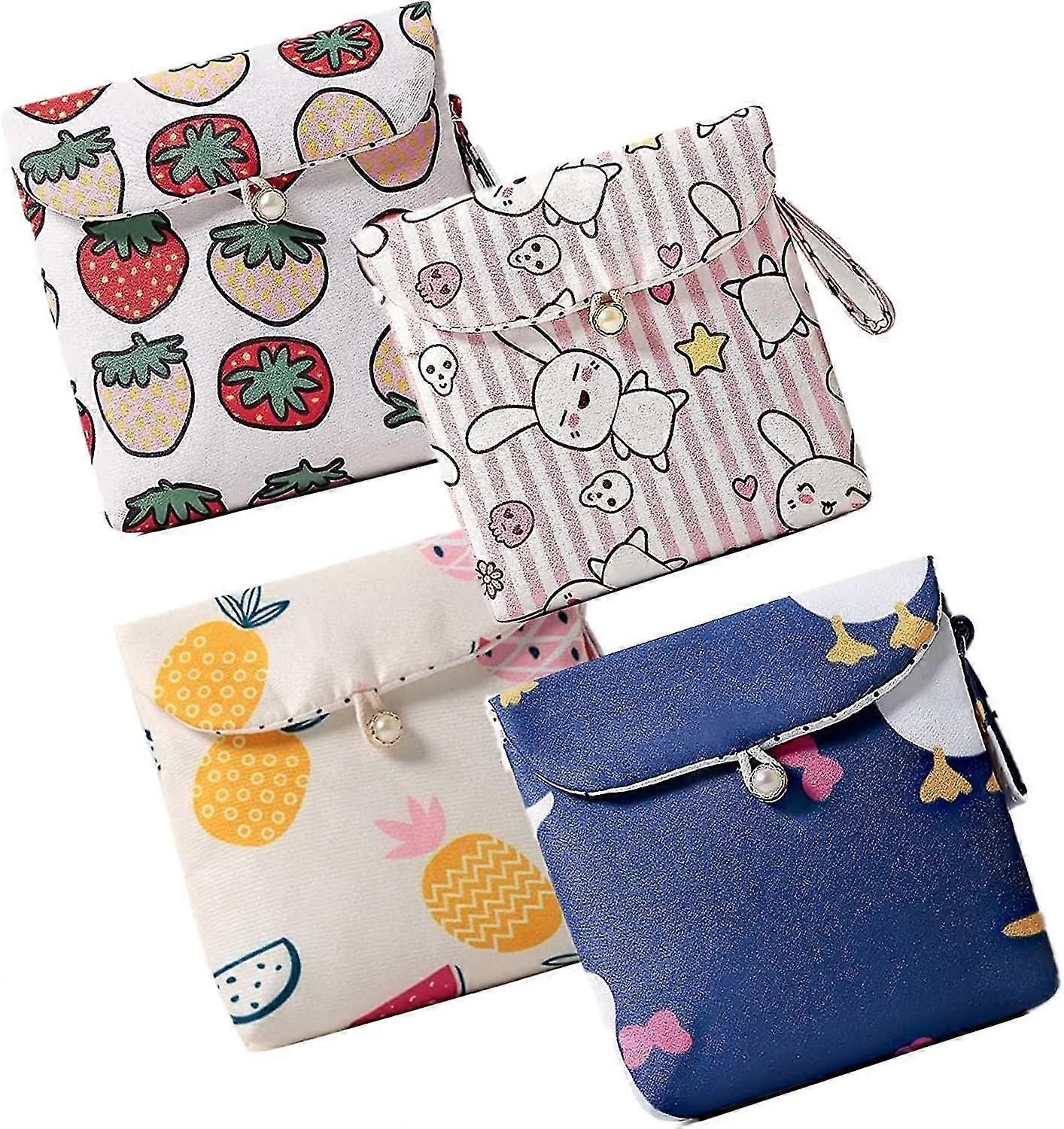 4 Pcs Cute Cotton Sanitary Napkins Bag, Menstrual Cup Pouch, Nursing Pad Holder,washable (ShiKai)