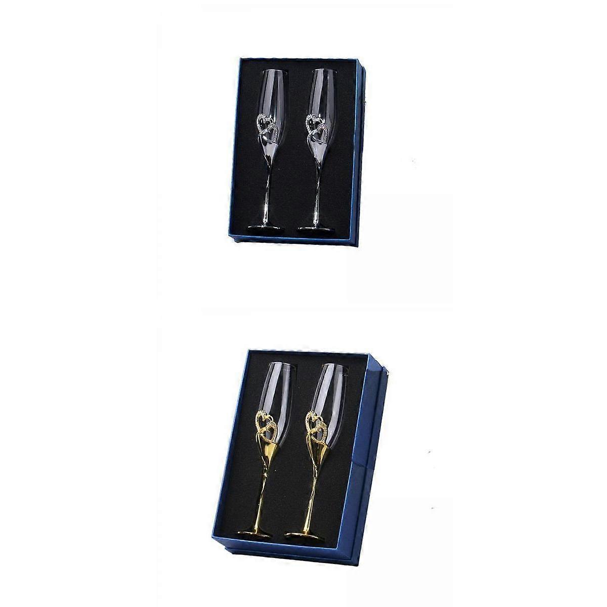 4 Pcs Wedding Toast Champagne Glasses Flutes Hearts
