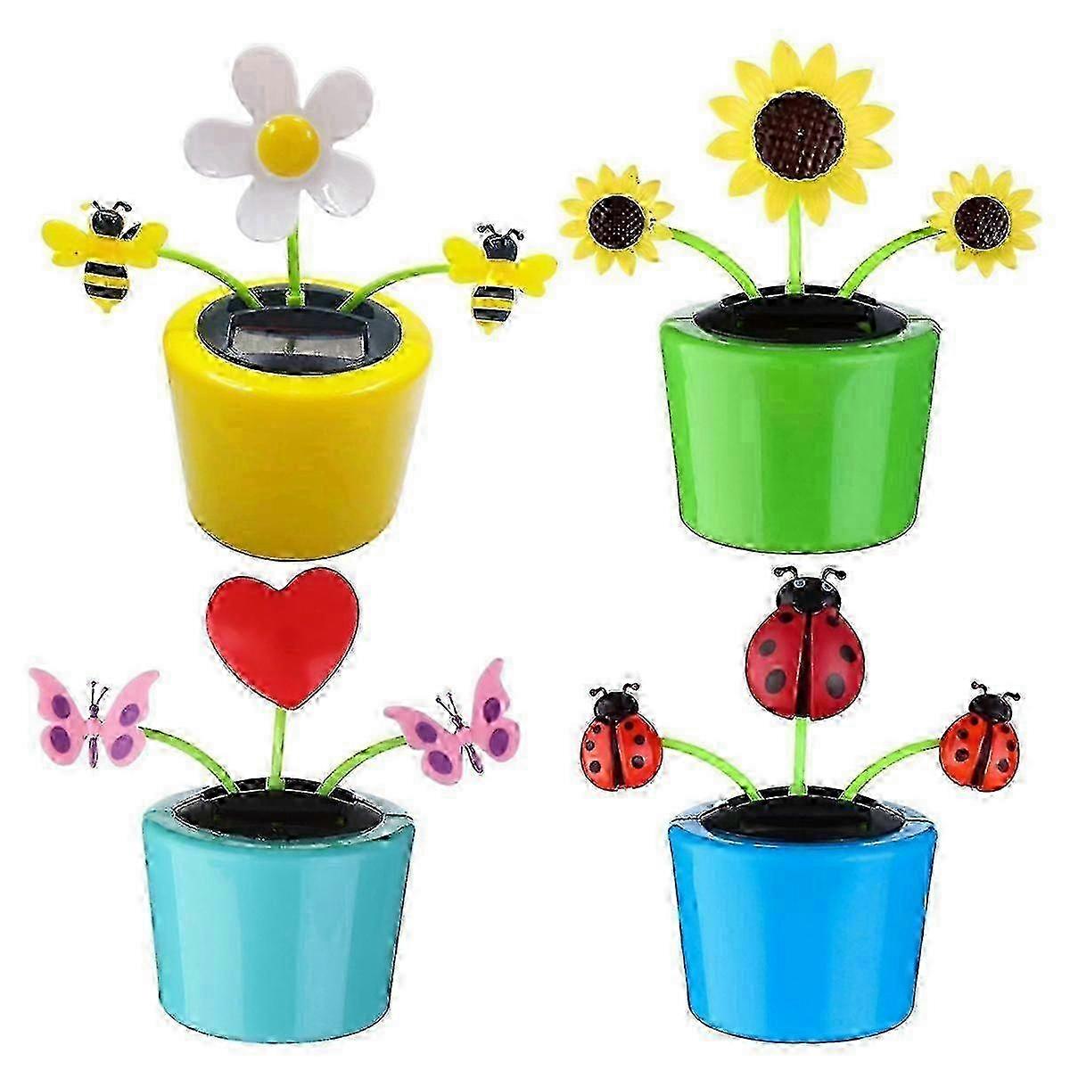 4PCS Solar Powered Dancing Bee & Sunflower Toys, Animated Bobblehead Dancer for Home, Office, & Car Decor
