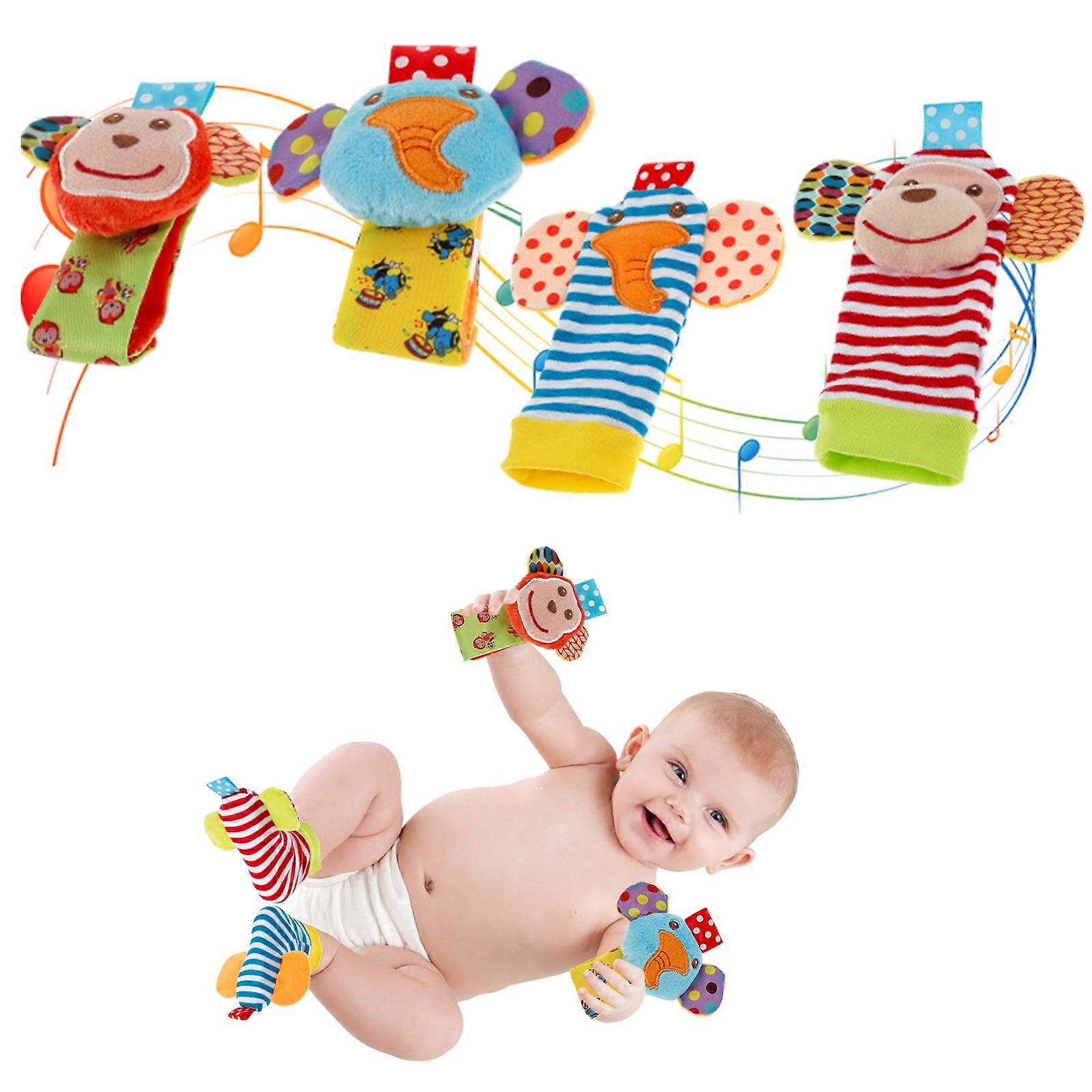4Pcs Wrist & Foot Rattle Socks, Sensory Texture Toys for Infants, Cartoon Animal Educational Toys, compatible with baby development