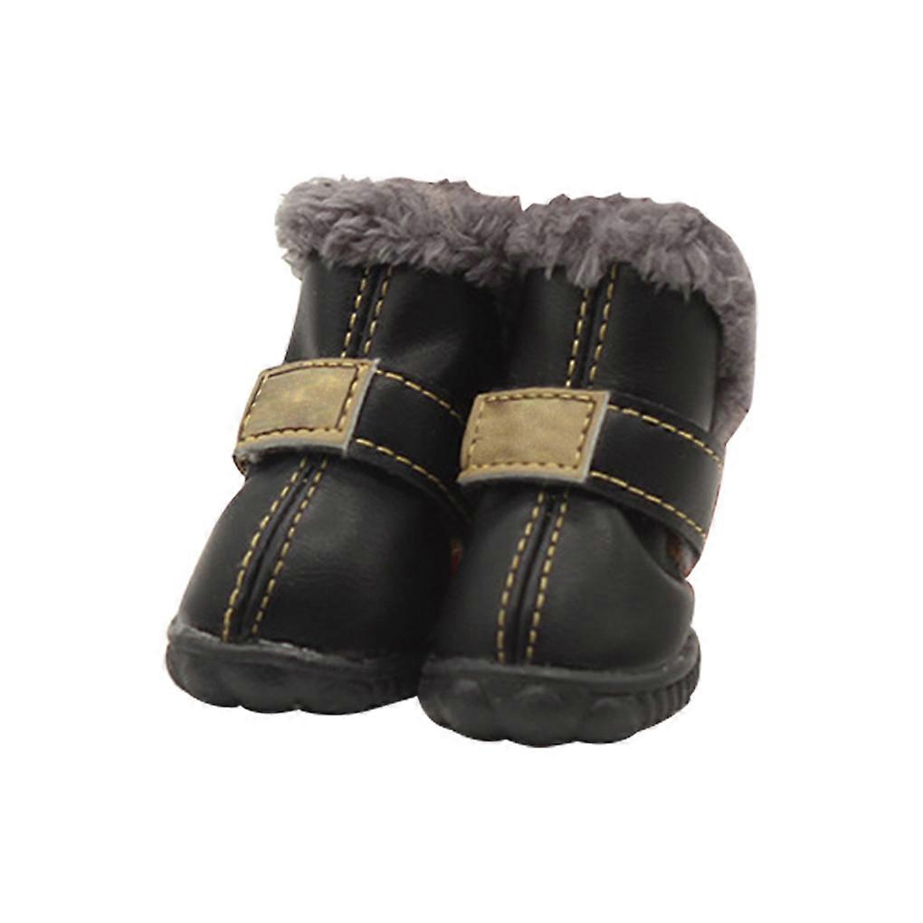4pcs Pet Dog Shoes Warm Fuzzy Fleece Waterproof Snow for Boots PU Leather Winter Pet Footwear
