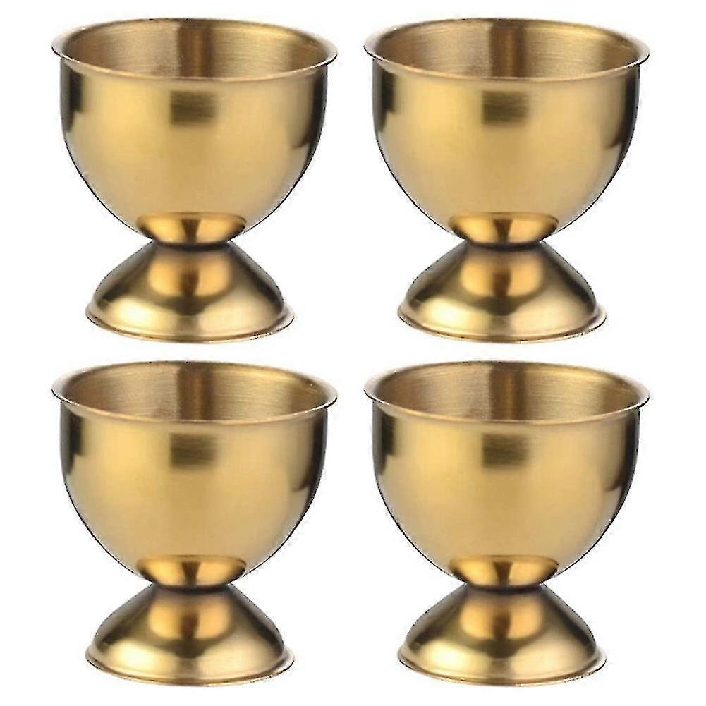 A. Easy to clean. B. It can be used to prepare soft - boiled eggs. Use it with an egg cup, sprinkle salt and chives on the egg, and serve it with a slice of toast. C. Egg holder size: 1.88 inches in diameter and 1.7 inches in height. It is convenient for serving soft - boiled, medium - boiled or hard - boiled eggs for breakfast, brunch or lunch, and is also suitable for displaying Easter egg works. D. This set of egg cups is made of stainless steel. E. It is a suitable egg holder for soft - boiled and hard - boiled eggs. F. Color: Gold G. Material: Stainless steel H. Dimensions: 4.8 x 4.8 x 3.7 cm I. Package contents: - 4 egg cups J. Only the above - mentioned package contents are included, and other items are not included. K. Notes: Light and different displays may cause the color of the item to vary slightly from the actual product. A measurement error of plus or minus 1 - 3 cm is allowed.