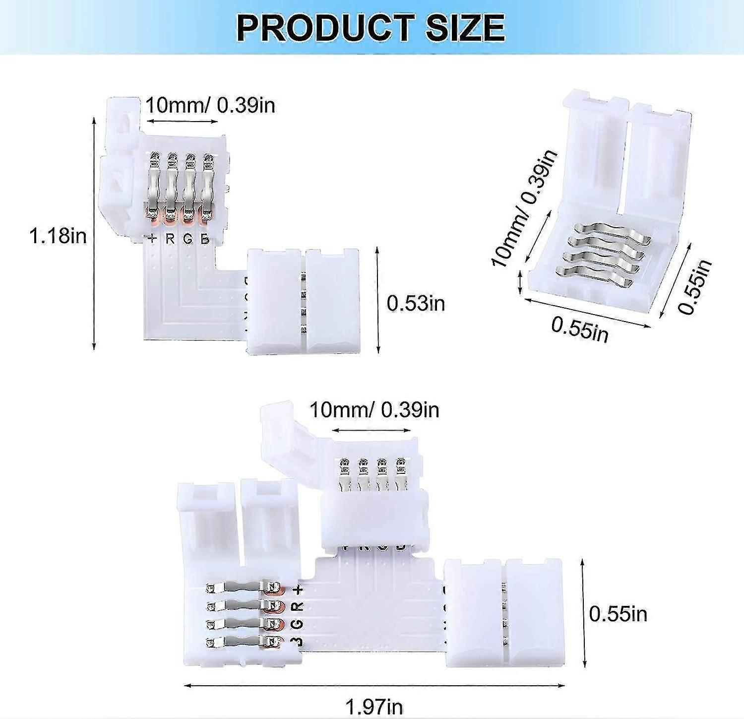 40 Pieces Led Strip Connectors 4 Pin Rgb Light Strip Connector Solderless Led