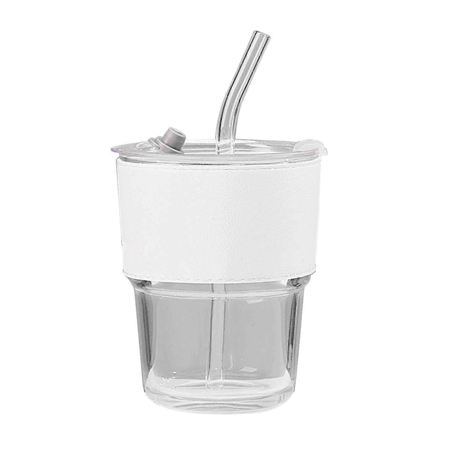 400ML Bamboo-Joint Glass Cup With Lid and Straw Transparent-Bubble Tea Cup Juice Glass Beer Can Milk Cups Breakfast-Mug Milk white