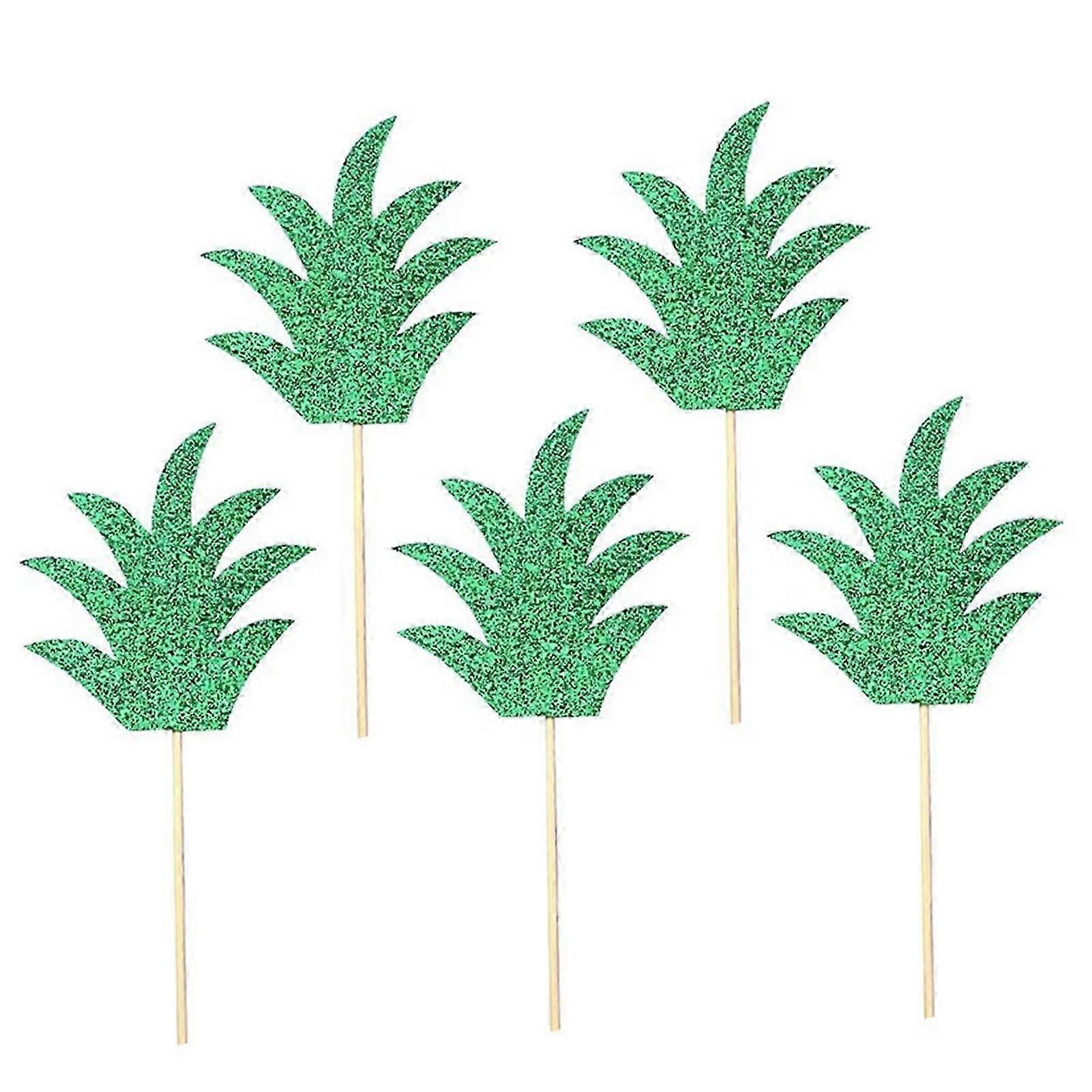 48pcs Pineapple Leaf Cake Toppers Green Glitter Hawaii Cake Decorations for Birthday Party