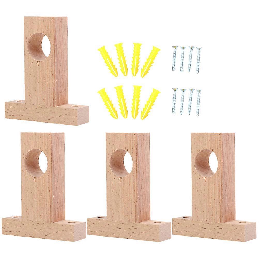 4Pcs Curtain Rod Bracket Rack Wooden Curtain Rod Holders Household Curtain Accessory