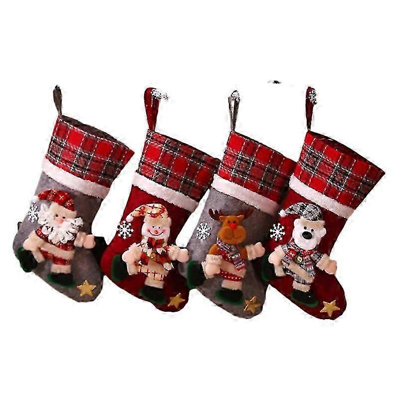 4PC Plaid Christmas doll socks Christmas decorations childrens gift bags candy socks gift bags