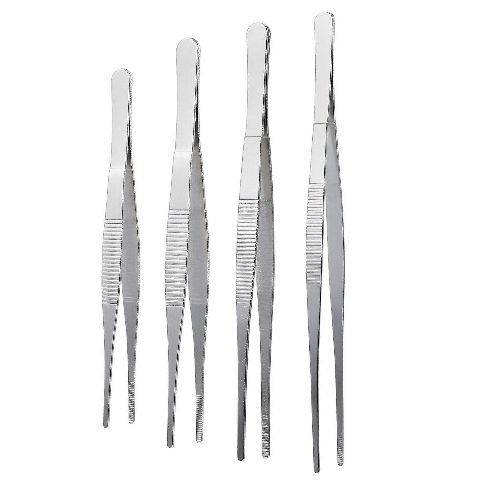 4Pcs Practical Tweezers Stainless Steel Long Straight Tweezers Forceps (Silver)