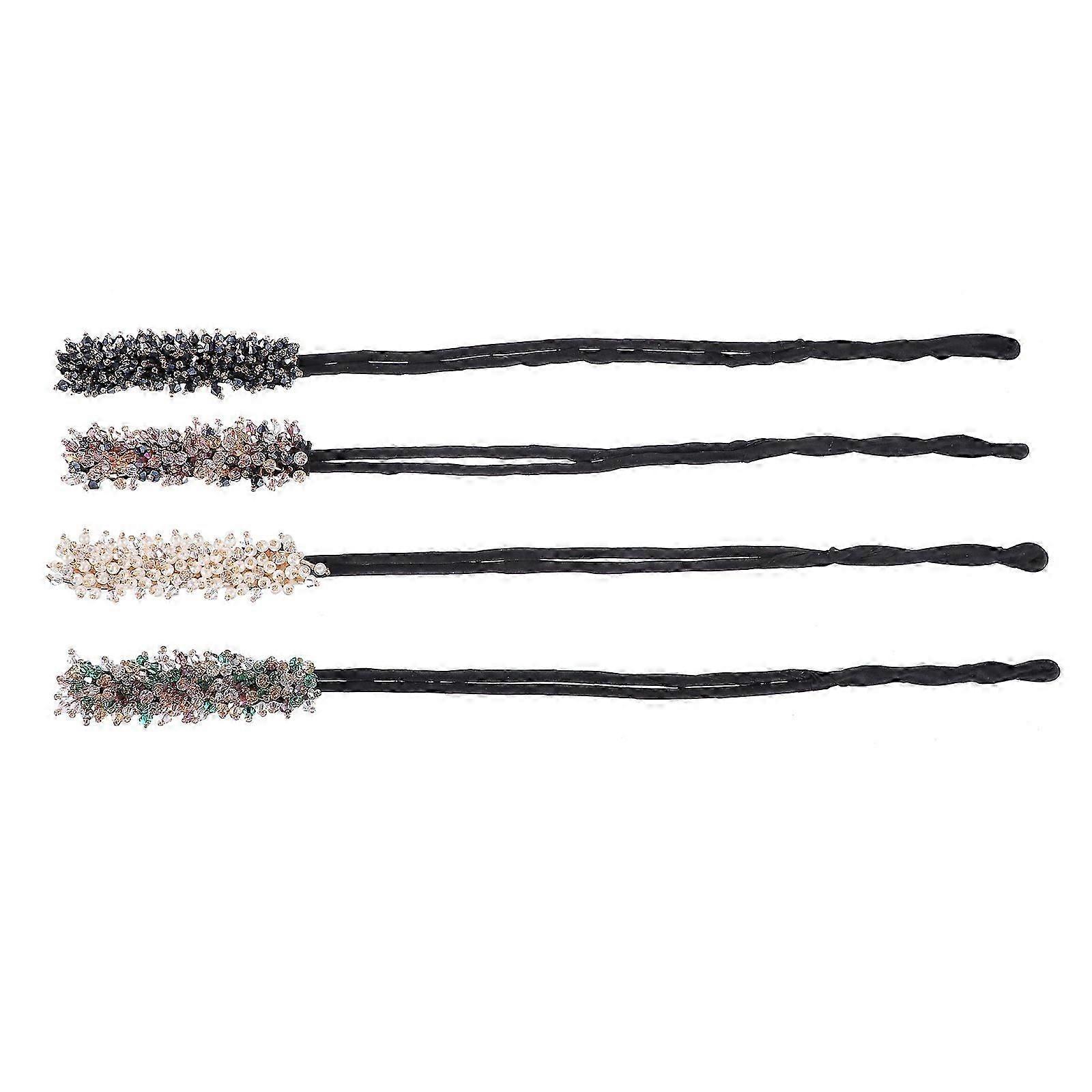 4Pcs Rhinestone Hair Bun Maker Women Hairstyle Tool DIY Hair Bun Accessories