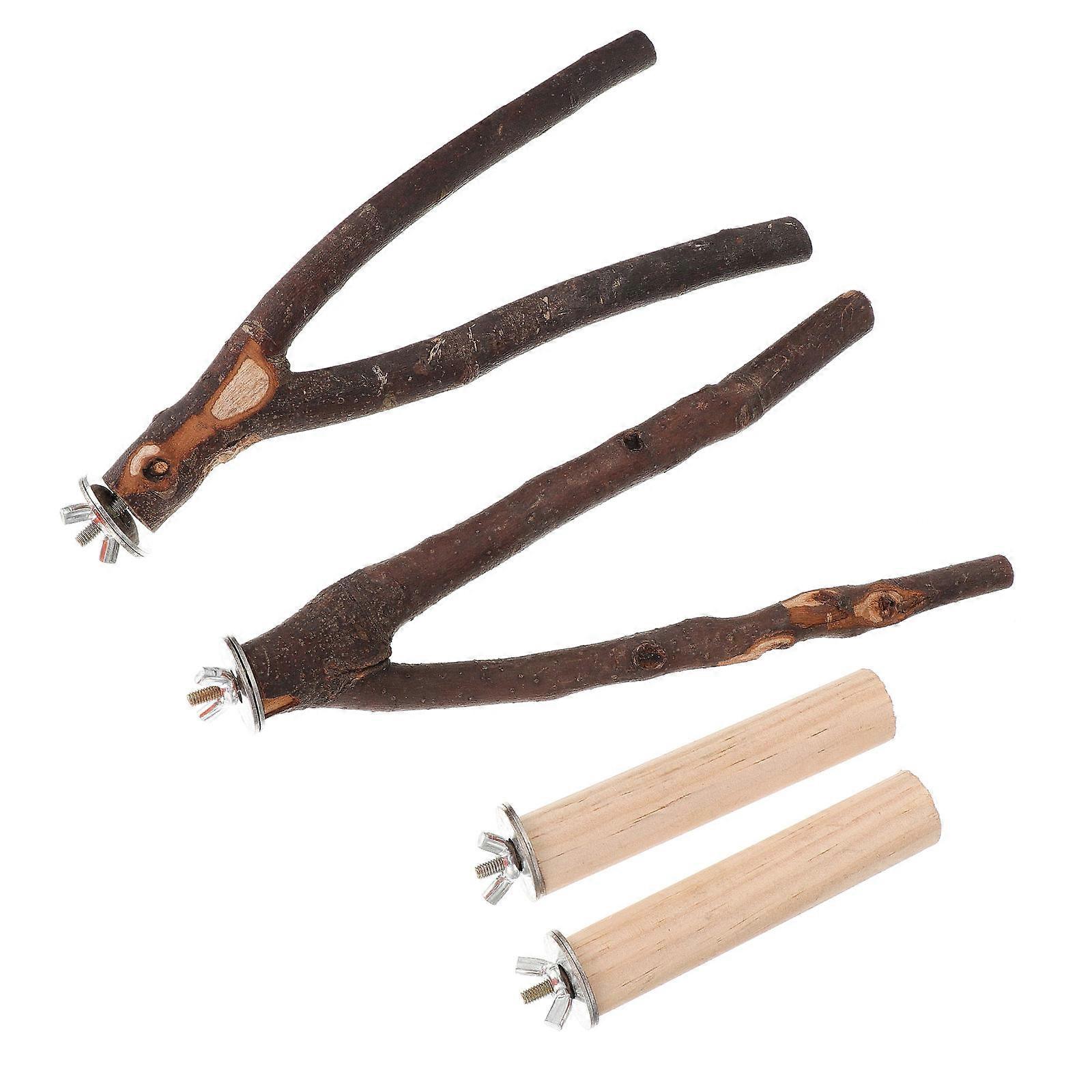 4pcs Natural Wood Bird Perch Sticks Durable Chew Toys Claw Grinding Rods for Parrot Cage Play and Foraging