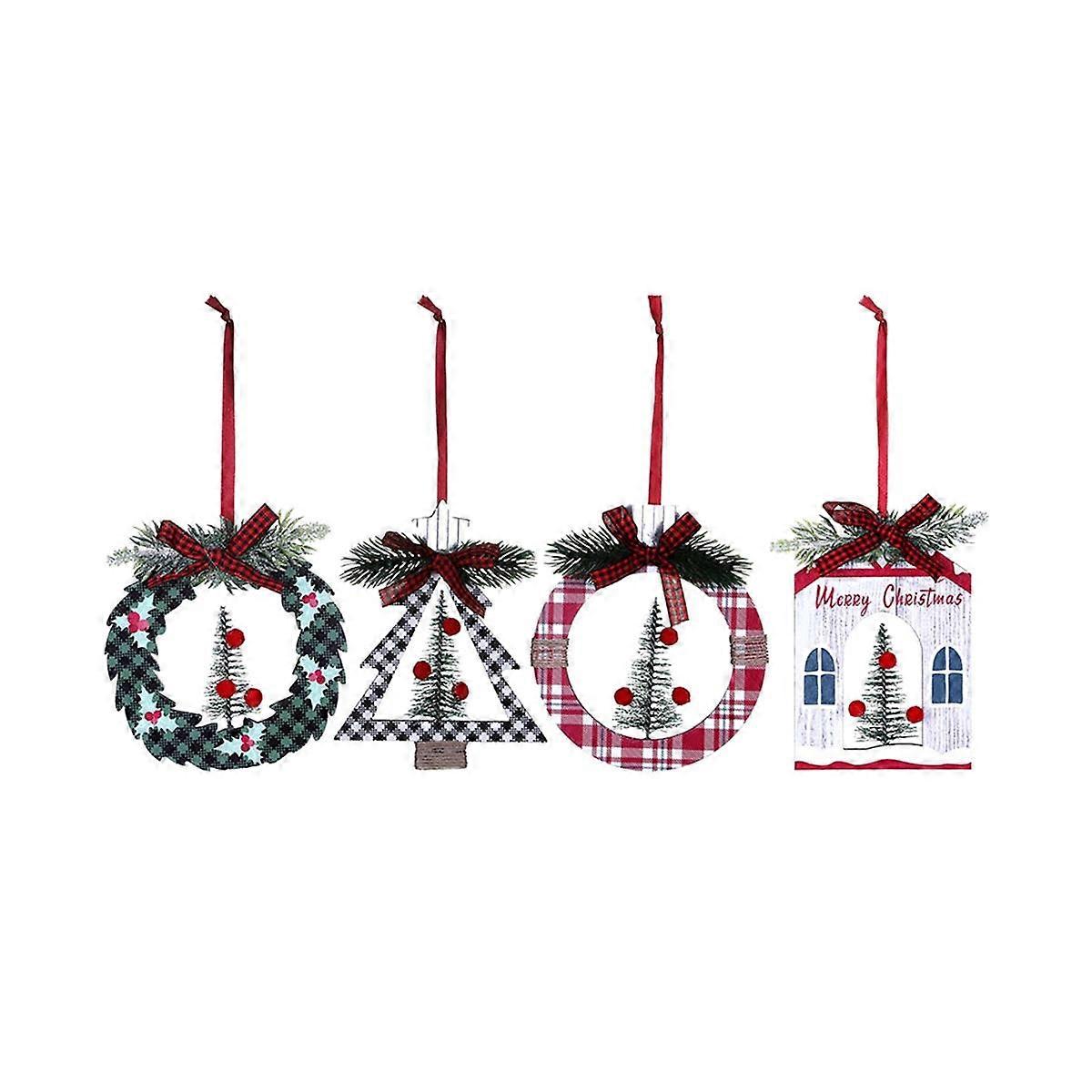 4Pack Christmas Ornaments, Wood Christmas Hanging Decorations for Christmas Party Decor Party Suppl