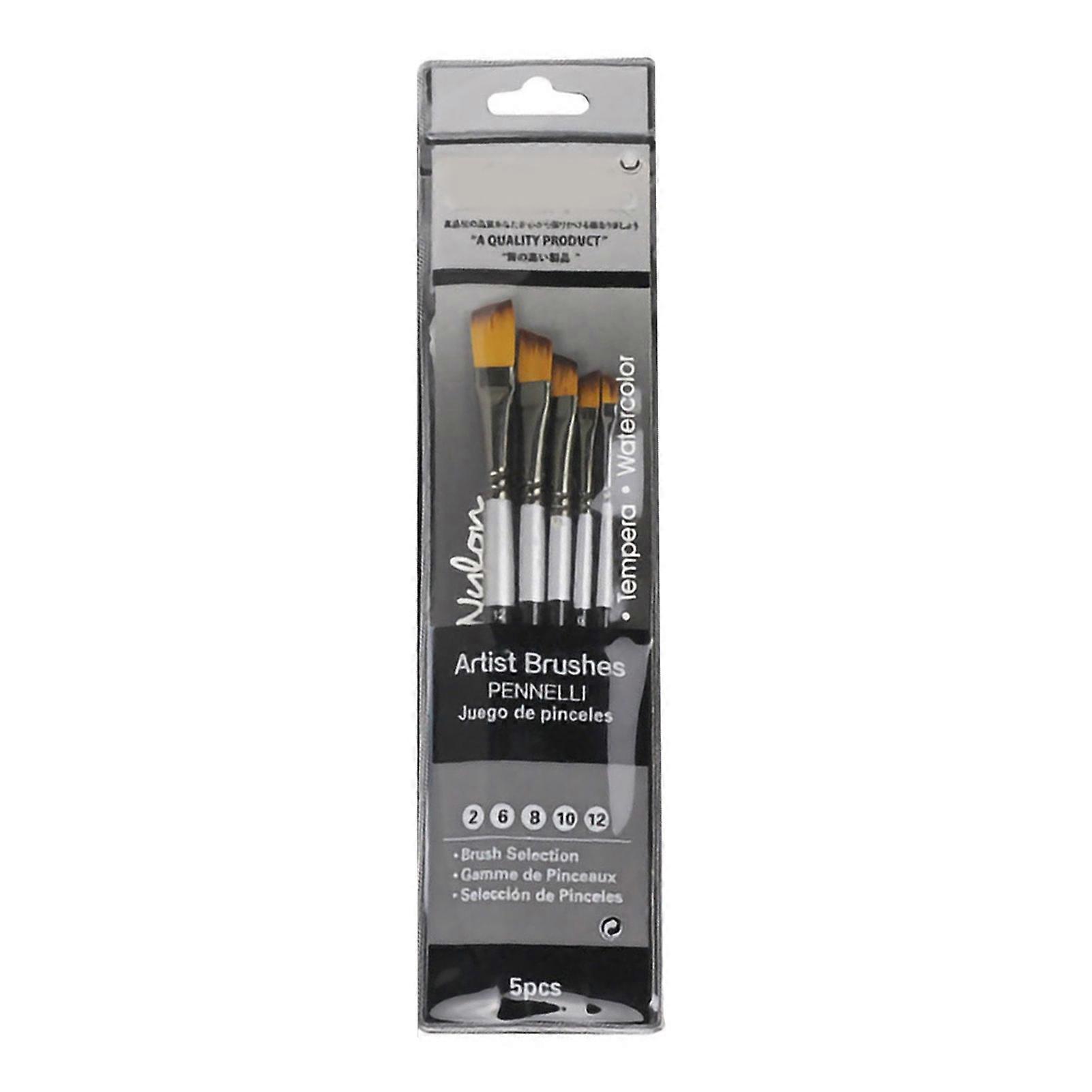 5 Pcs Paint Brush Set Nylon Bristles Copper Tube Wood Pen Holder Watercolor Paintbrushes Kit