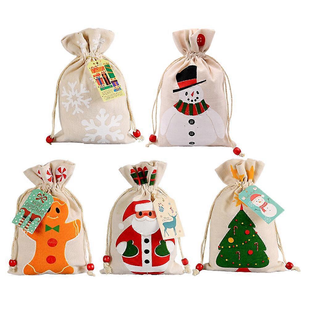 5 Pcs Santa Present Sack Fabric Drawstring Bag Candy Storage Bag Festive Gift Ribbon Bag Candy Gift Bag Drawstring Wrapping Bag