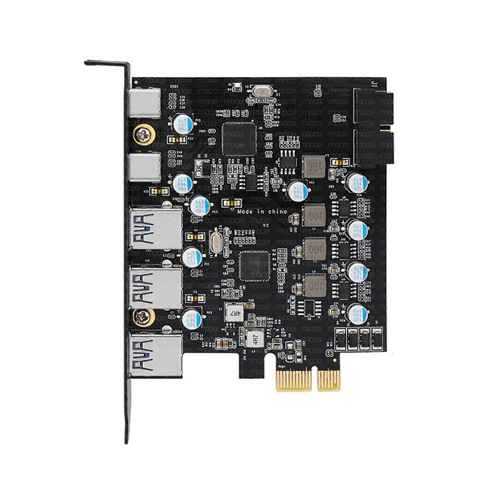 5-Port PCI-E Expansion Adapter 3USB 3.0 2x Type C PCI-E HUB Controller Adapter Card with 19Pin Power Supply 5Gbps Multicolor