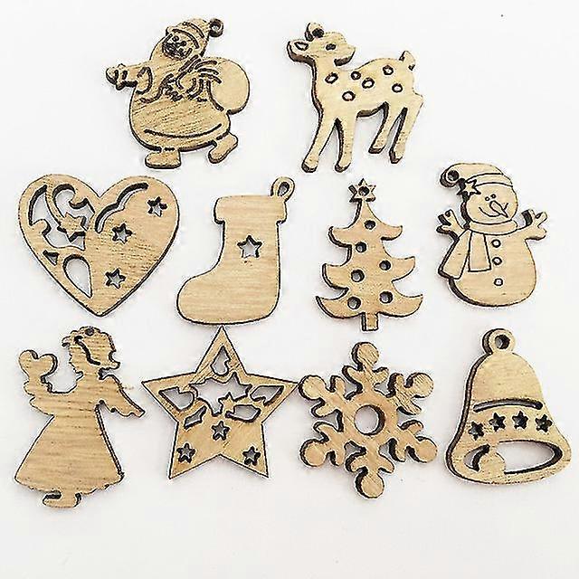 50pcs Wooden Ornaments Diy Xmas Tree Hanging Pendants Decoration For Home 2024 New Year Party Navidad Decor Supplies