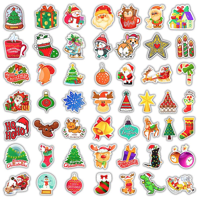 50pcs Christmas Diy Cartoon Graffiti Waterproof Stickers Bicycle Backpack Decals
